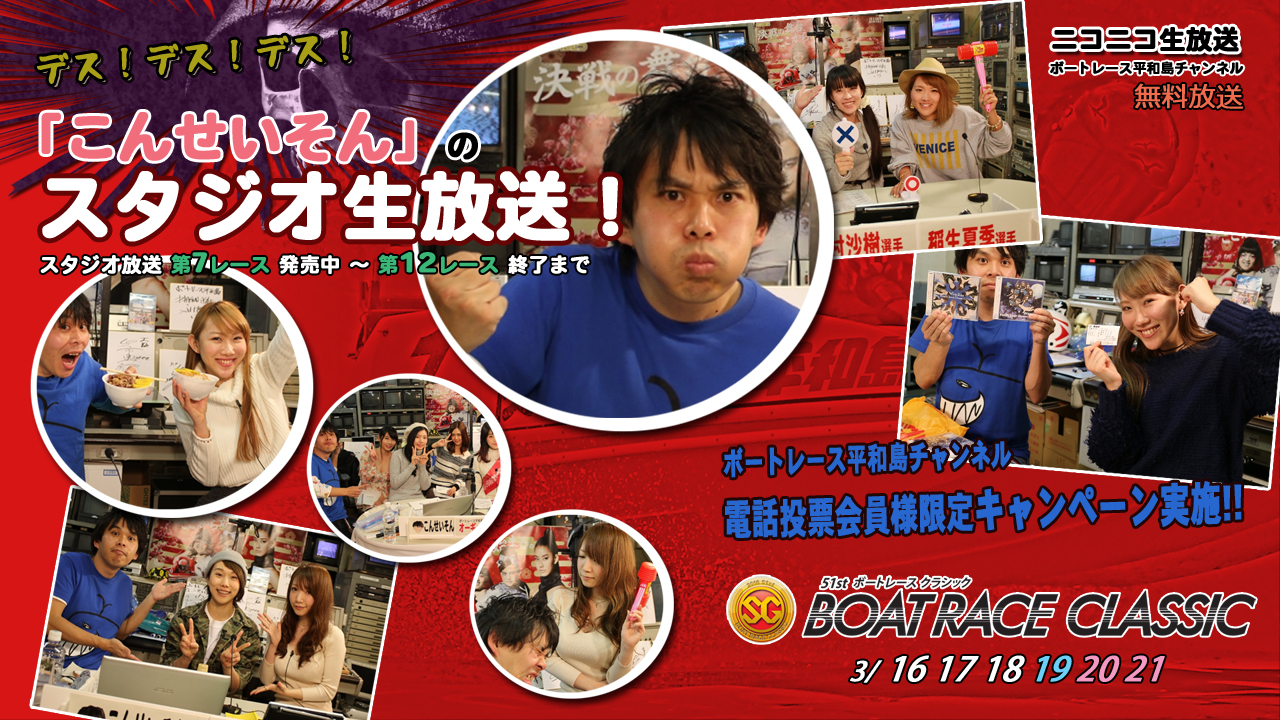 ニコニコ生放送 ボートレース平和島チャンネル こんせいそんのスタジオ生放送 公開日時: 2016年2月21日 @ 1280 × 720 カテゴリー: ニコニコ生放送 ボートレース平和島チャンネル こんせいそんのスタジオ生放送