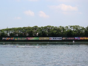 さすが女子レース、横断幕も華やかに水面を飾っています。