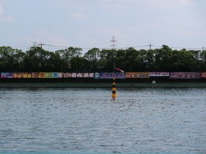 早速水面に・・。横断幕が処狭しと掲げられていますねえ。1マーク側のレスキューもピット(?)で待機・・。