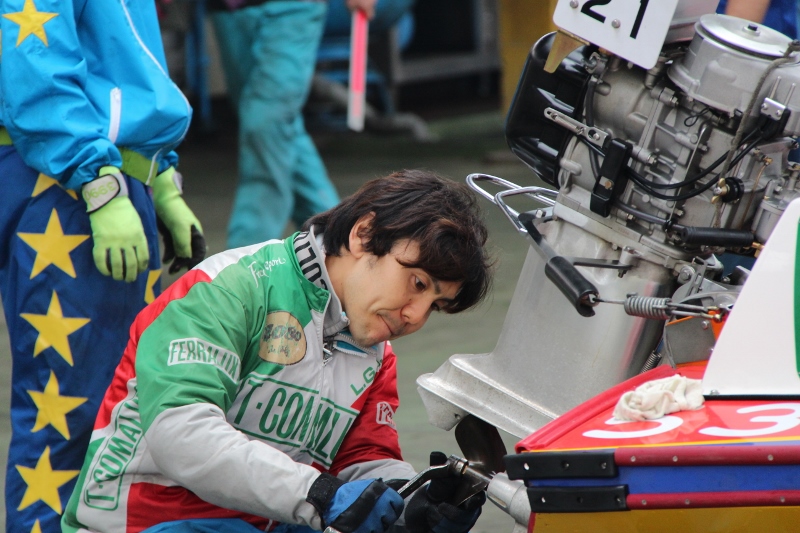 先輩男子選手に混じってただ一人の女子、キビキビ作業を続けていました!