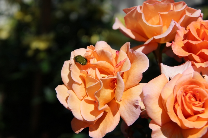 平和島劇場のエントランスの花壇に薔薇が沢山植えられています。