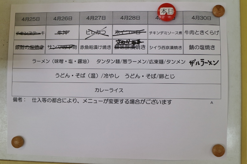 取材時のメニュー。ピット選手食堂はお昼ごはんのみの提供です。