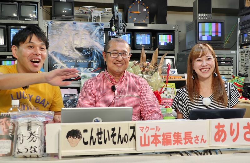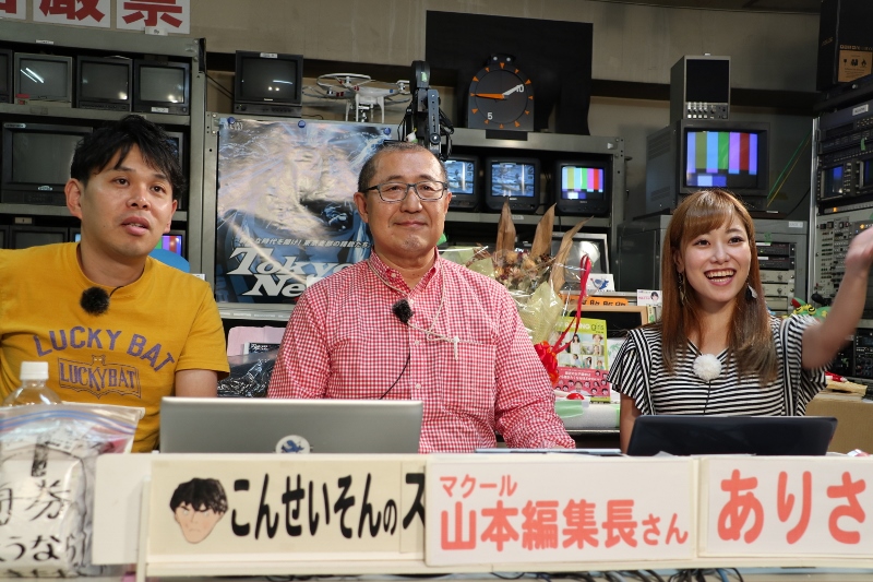 マクール紙山本編集長がイベントステージ予想会の合間を縫って、スタジオに飛び入り出演!!おお!本物だあ!