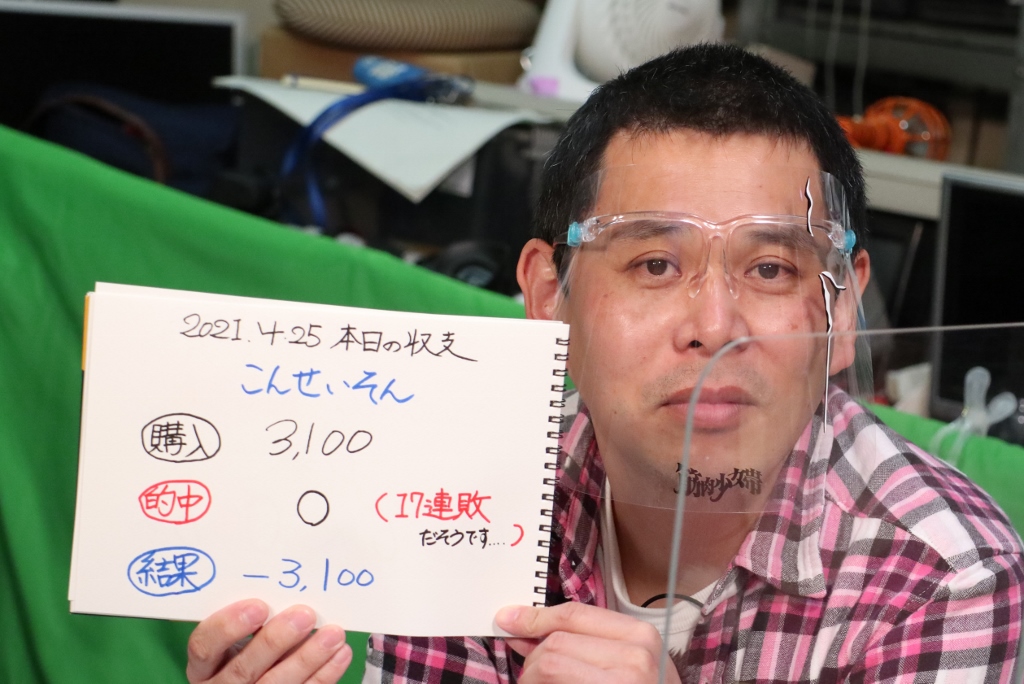 昨日は全敗。今日から無観客開催なのに、昨日は当たり舟券をドヤ顔で撮れなかった番組MCこんせいそんさん。