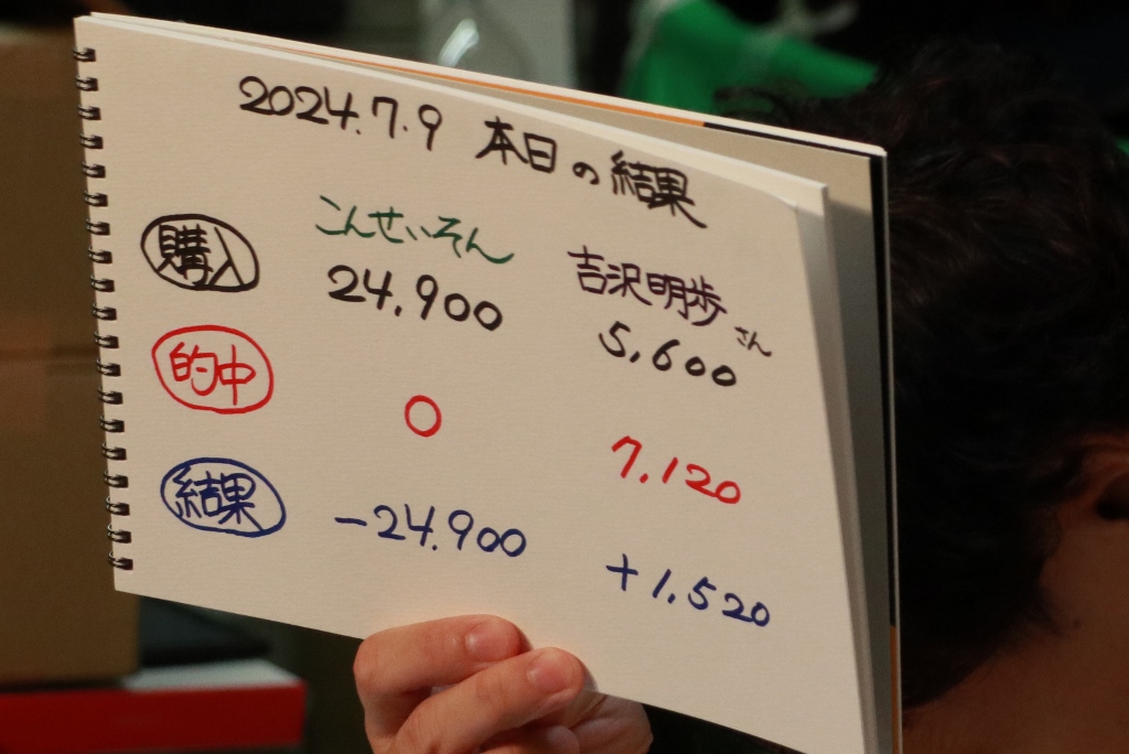 結局こんさん0勝、吉沢さん1勝。収支は吉沢さん逆転プラス収支!おめでとうございます!6年振りでもしっかりプラス!お見事です!