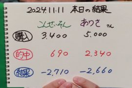 今節の結果です。こんさん、ゲスト陣共にマイナス収支でした。今節苦戦でしたねえ。