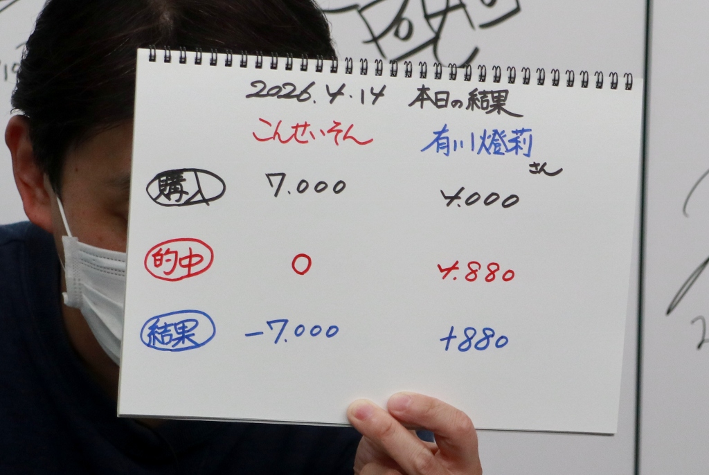 こんさんマイナス収支、ゲスト陣見事なプラス収支でした。お見事でした!
