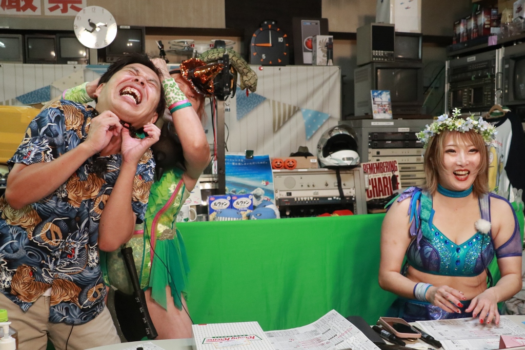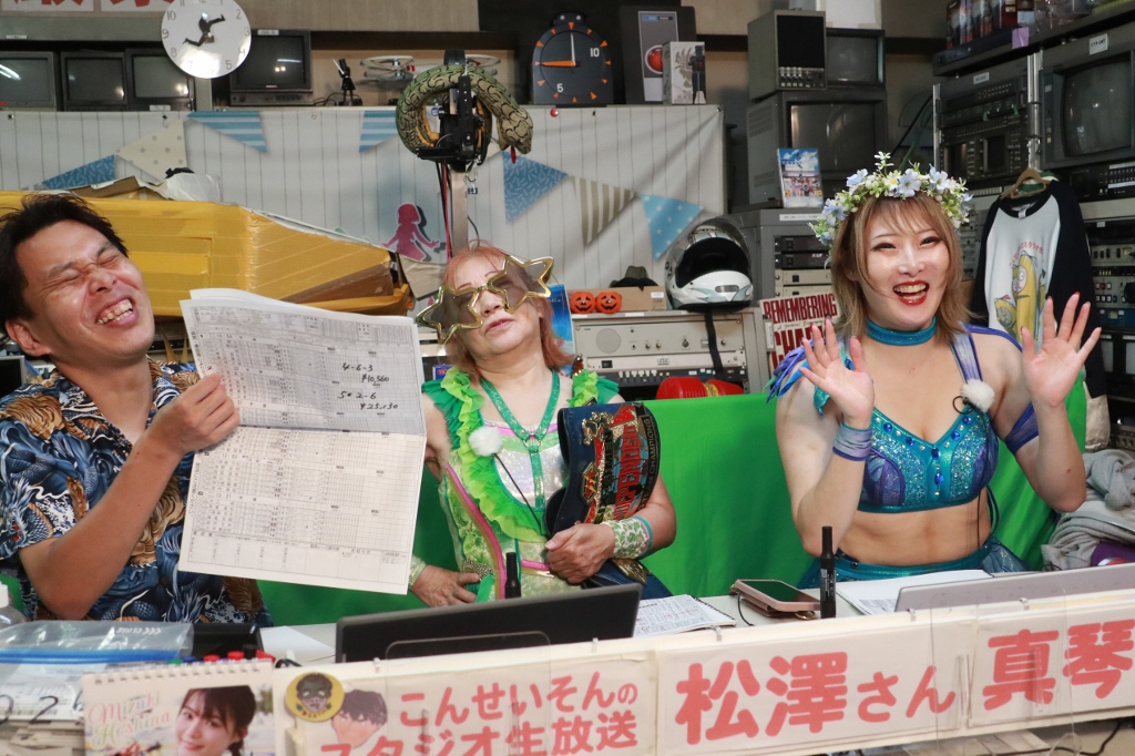 初日のゲストはスタジオ7回目の登場、写真集やDVDも人気、現役バリバリの女子プロレスラー『真琴』さんとマネージャー兼女子プロレスラーのして活躍、見事チャンピオンベルトを獲った『松澤さん』!