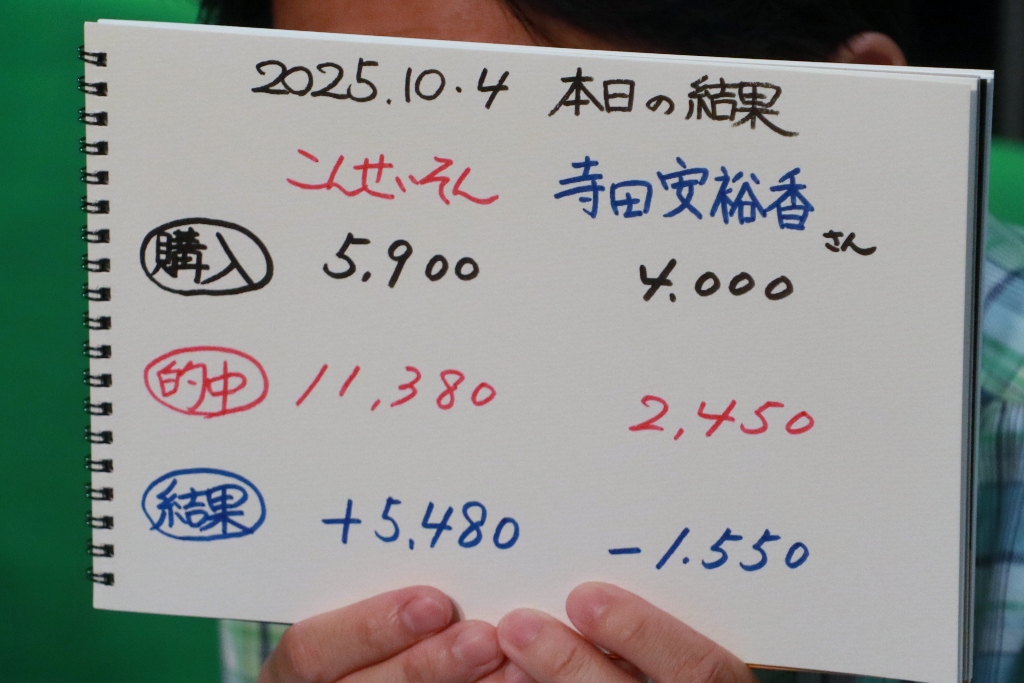 お二人共に的中!おめでとうございます!こんさん3連勝!寺田さん2勝目!