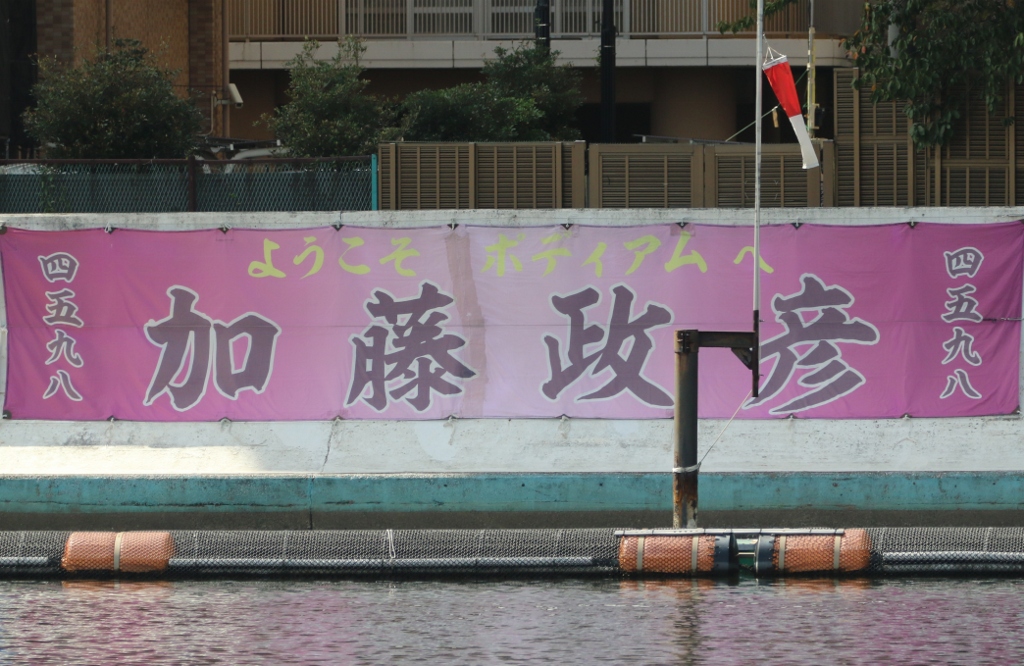 ラストスタンドの平和島水面を彩る今節の横断幕!