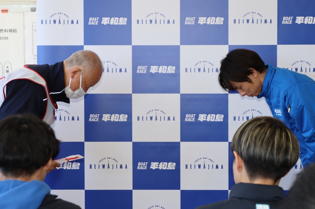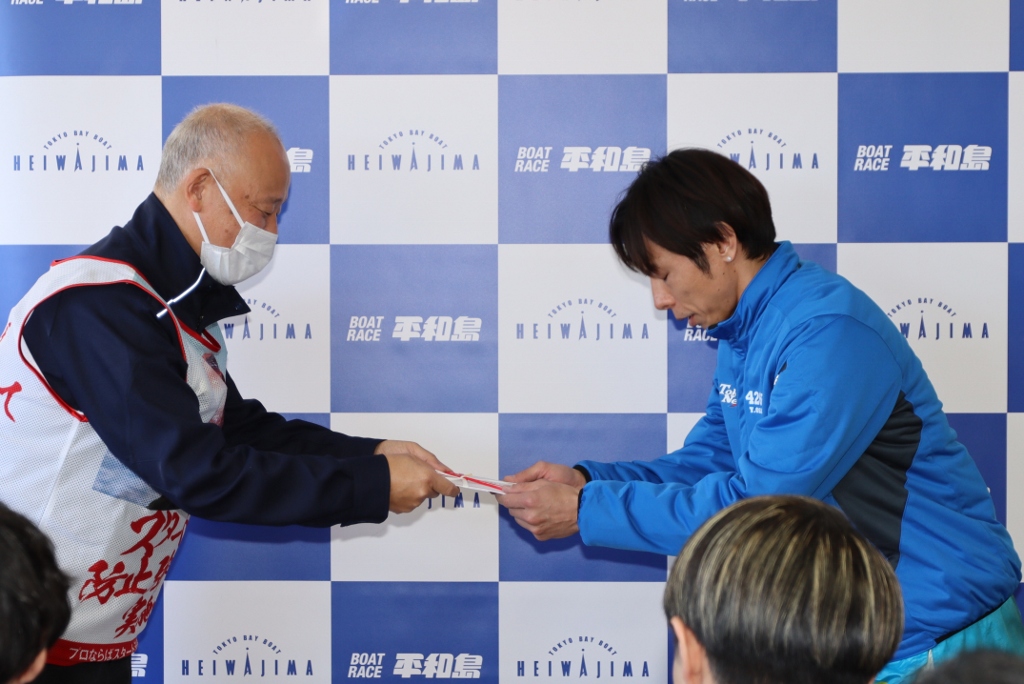 ボートレース平和島競技棟にて財団法人日本モーターボート競走会より日本モーターボート選手会東京支部へ「スタート事故防止目標達成選手会表彰」が行われました。