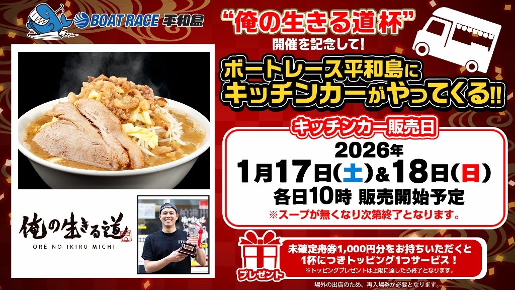 未確定舟券1,000円分をお持ちいただくと1杯につきトッピング1つサービス!