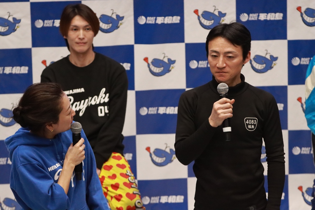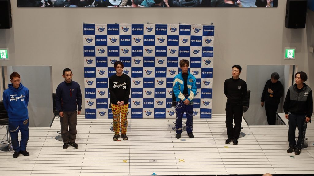 『俺の生きる道杯』優勝戦出場選手公開インタビュー 投稿日:2026年1月18日 作成者: pstar 今節も1階イベントホールで優勝戦出場選手公開インタビューが行われました。 優勝戦対策に! ★第12レース優勝戦 1号艇:佐藤 翼 選手 2号艇:三角 哲男 選手 3号艇:岡村 仁 選手 4号艇:久田 敏之 選手 5号艇:福島 勇樹 選手 6号艇:間野 兼礼 選手