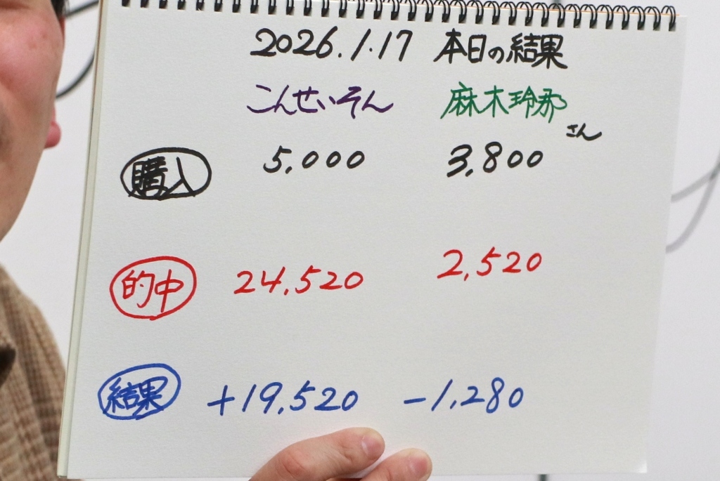 麻木さん、新スタジオでの予想、一日お疲れさまでした!