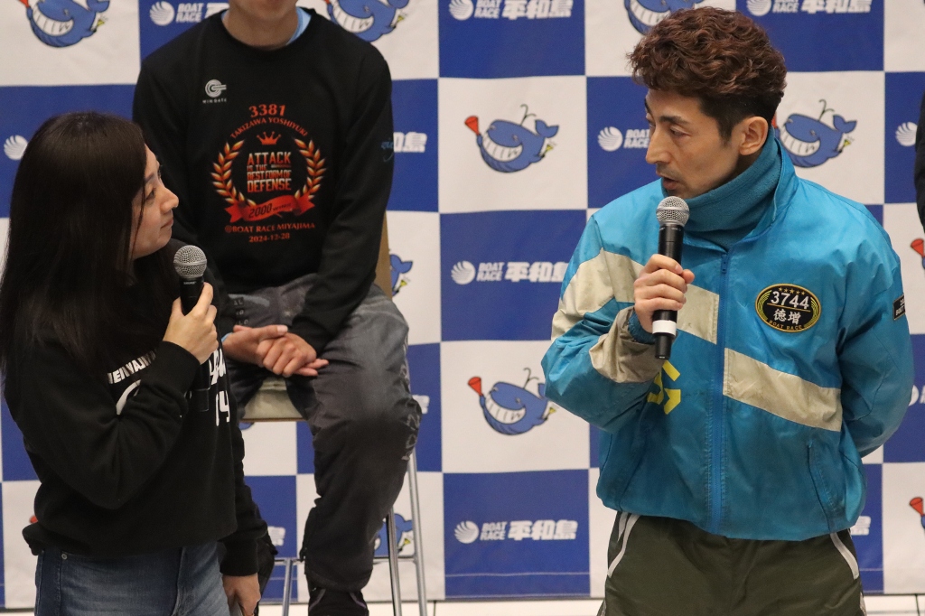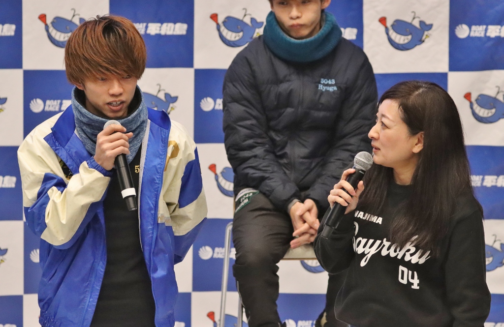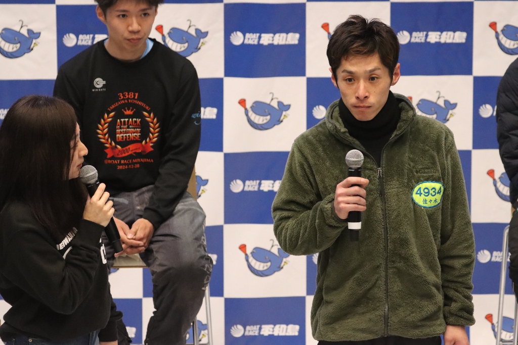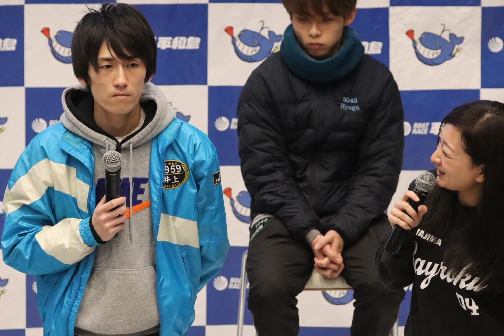 『BOATBoyカップ~ヤングvsベテランバトル~』優勝戦出場選手インタビュー 投稿日:2026年1月26日 作成者: pstar さあ、今日は優勝戦! 新スタンド1階で行われた優勝戦出場選手インタビューです。 優勝戦対策に! ★第12レース優勝戦 1号艇:定松 勇樹 選手 2号艇:井上 忠政 選手 3号艇:櫻井 優 選手 4号艇:中村 日向 選手 5号艇:徳増 秀樹 選手 6号艇:佐々木 翔斗 選手