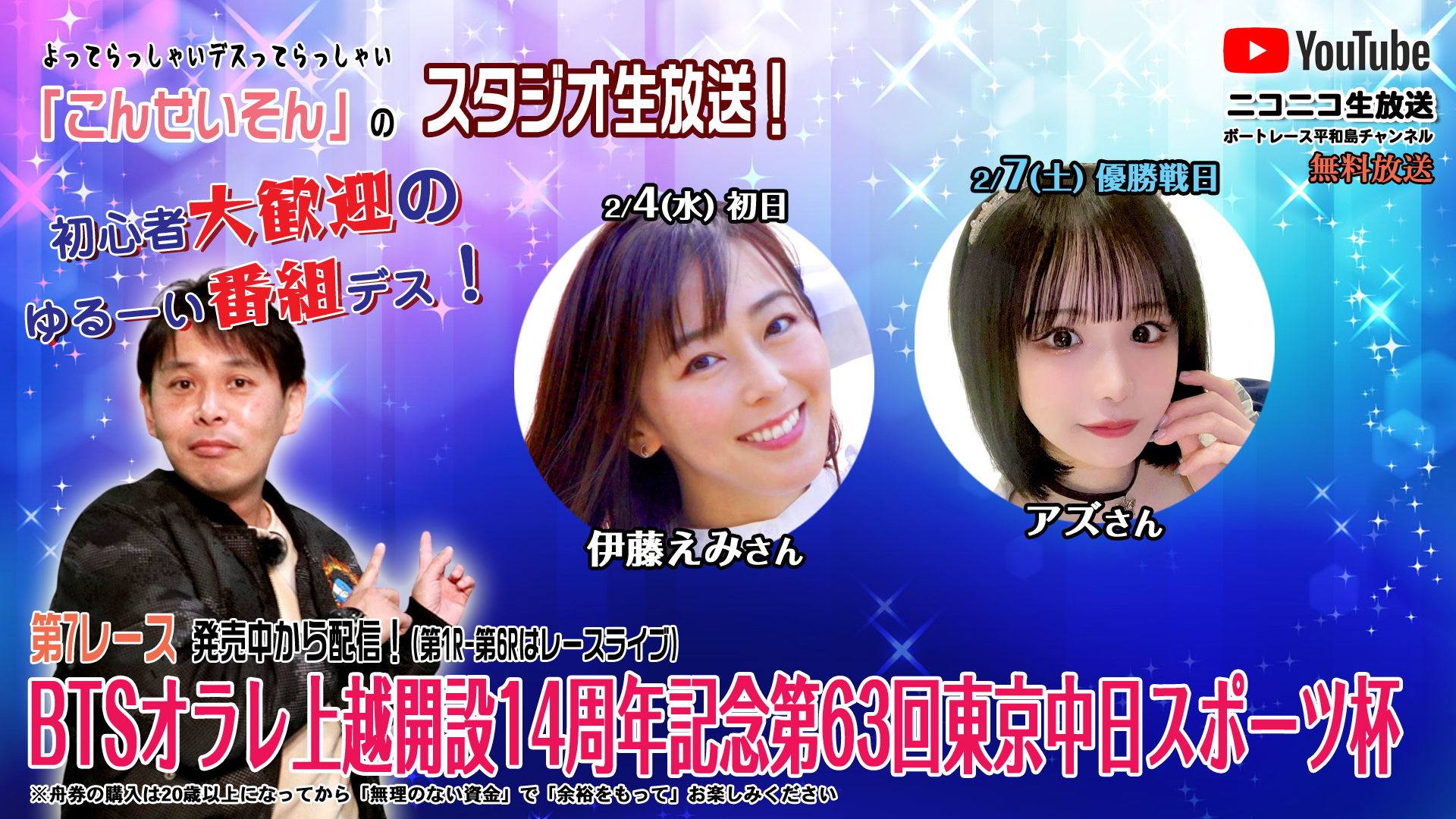 ★こんせいそんのスタジオ生放送!『BTSオラレ上越開設14周年記念第63回東京中日スポーツ杯』