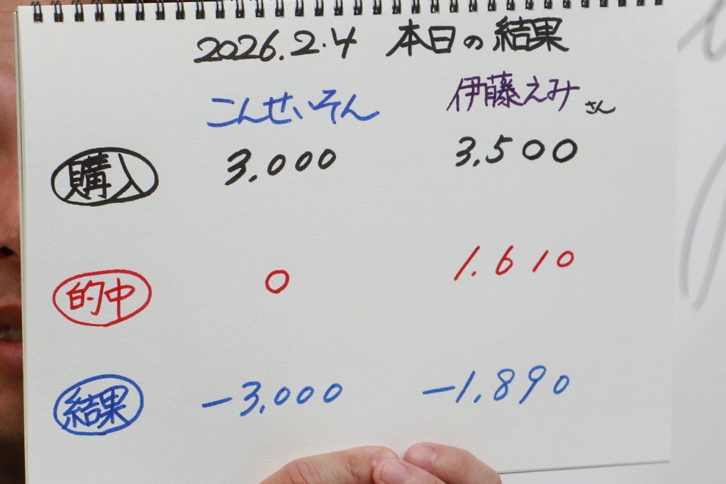 結局こんさん0勝、伊藤さん4勝。収支は残念ながらマイナスでした。