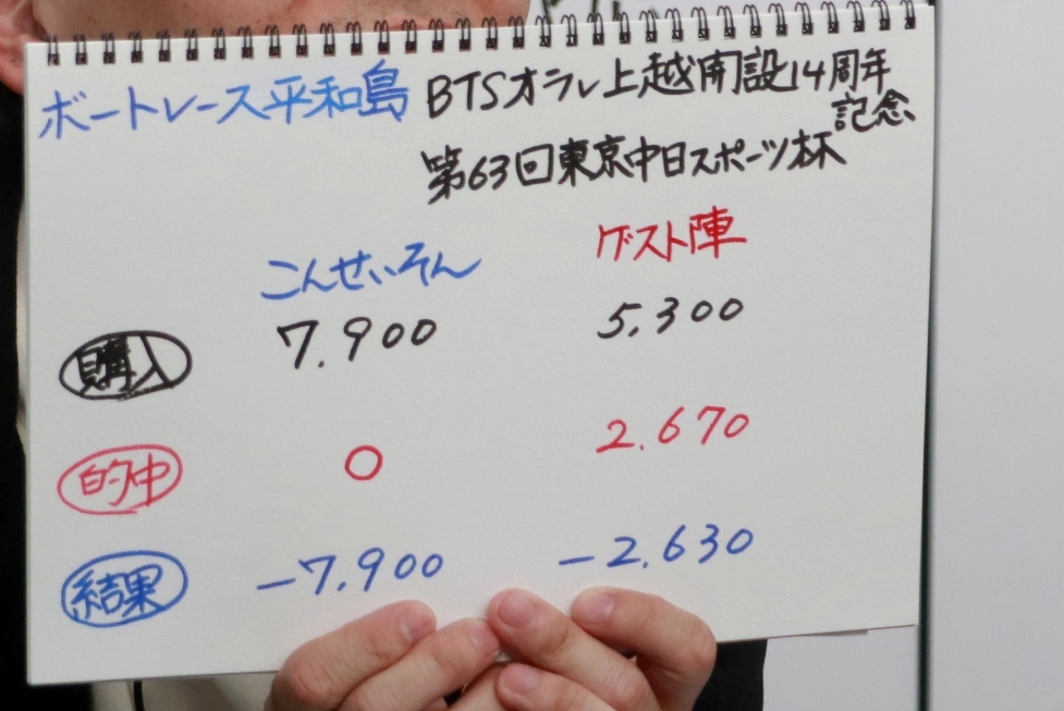 今節の結果です。こんさん、ゲスト陣共にマイナス収支でした。