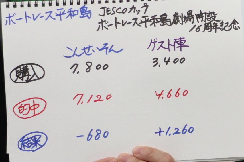 あらあ、こんさんまたゲストを差し置いて的中!3連単で良き配当ゲット!