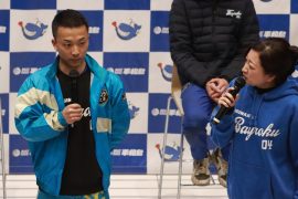 『JESCOカップ・ボートレース平和島劇場開設16周年記念』優勝戦出場選手公開インタビュー 投稿日:2026年2月1日 作成者: pstar 短期決戦を制するのは!? 優勝戦出場選手公開インタビューの模様です。 ★第12レース優勝戦 1号艇:前田 篤哉 選手 2号艇:権藤 俊光 選手 3号艇:宮之原 輝紀 選手 4号艇:吉川 晴人 選手 5号艇:宮田 龍馬 選手 6号艇:茶谷 信次 選手