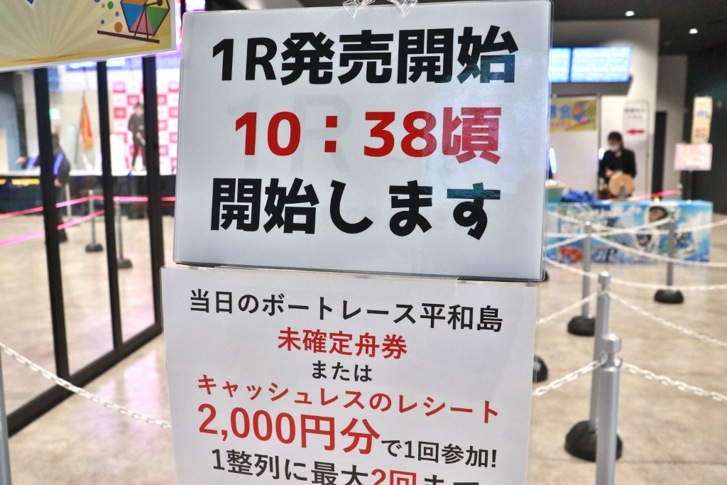 ボートレース平和島で購入したボートレース平和島の未確定舟券2,000円分(キャッシュレスレシートでも可)で1回抽選ができます