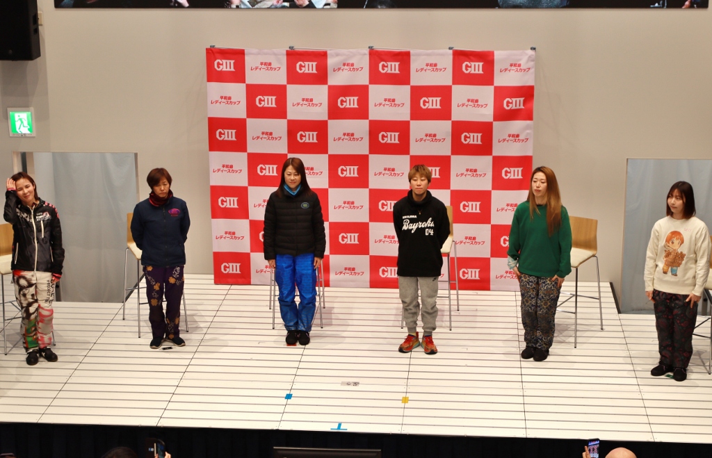 『GⅢ平和島レディースカップ』優勝戦出場選手公開インタビュー 投稿日:2026年2月17日 作成者: pstar いよいよ優勝戦! 優勝戦出場選手公開インタビューの模様です。 優勝戦対策に! ★第12レース優勝戦 1号艇:堀之内 紀代子 選手 2号艇:山川 美由紀 選手 3号艇:寺田 千恵 選手 4号艇:藤原 菜希 選手 5号艇:原田 佑実 選手 6号艇:井上 未都 選手