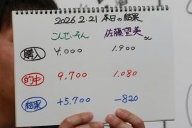 結局こんさん3勝、佐藤さん2勝。収支はこんさん連敗ストップで久しぶりのプラス収支、佐藤さんは悔しいマイナス収支でした。