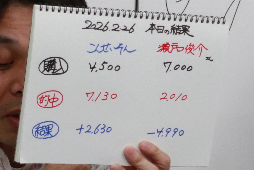 結局こんさん2勝、瀬戸口さんさん1勝。こんさん逆転プラス、瀬戸口さん悔しいマイナス収支はでした。