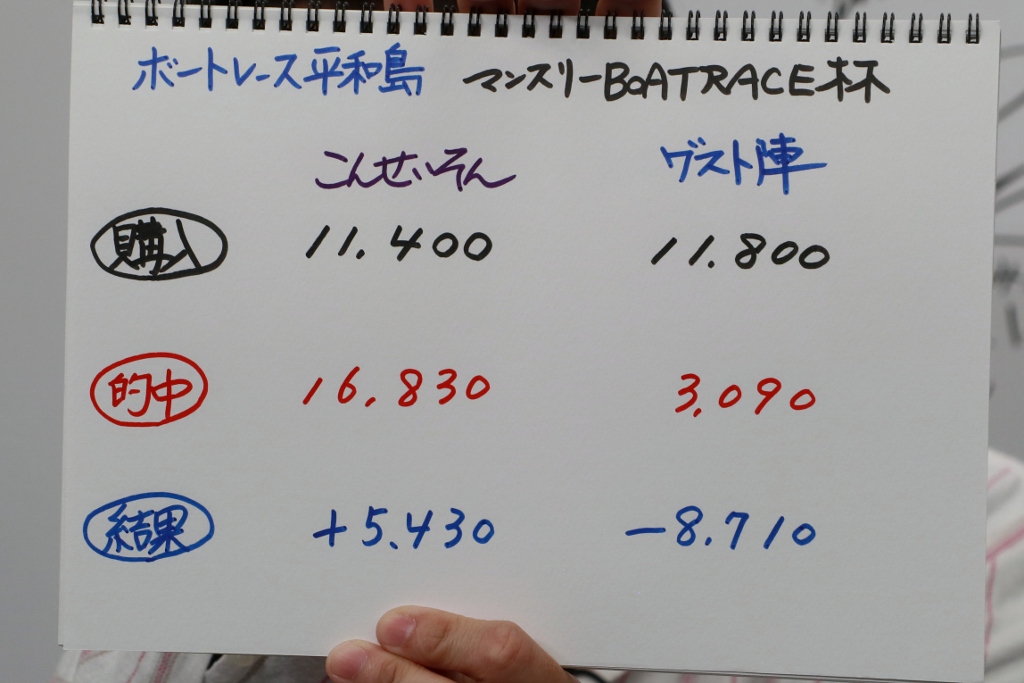 こんさん優勝戦的中!2連勝で2枚ゲットで逆転プラス!おお!やればできる子!番組MCの面目躍如!