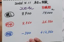 前回は2勝(幻の1勝『おかみ酒』カウント含分む)。収支は書面上ではプラスです!今日は実質プラスで!