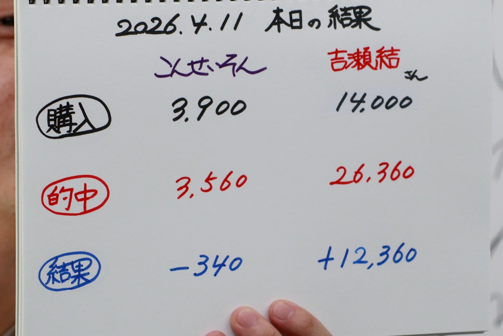 収支はこんさんマイナス、吉瀬さんは文句なしのプラス収支!素晴らしい!
