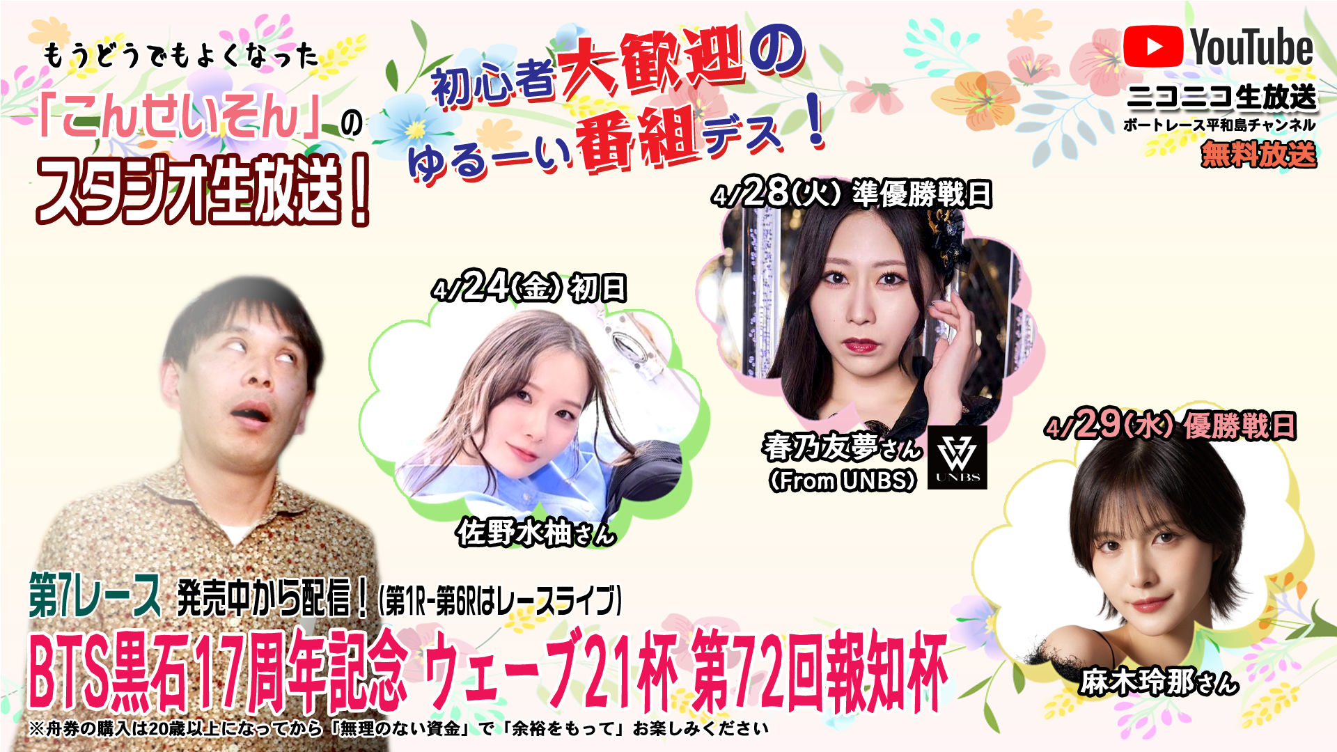 ★こんせいそんのスタジオ生放送!『BTS黒石開設17周年記念・ウェーブ21杯・第72回報知杯』