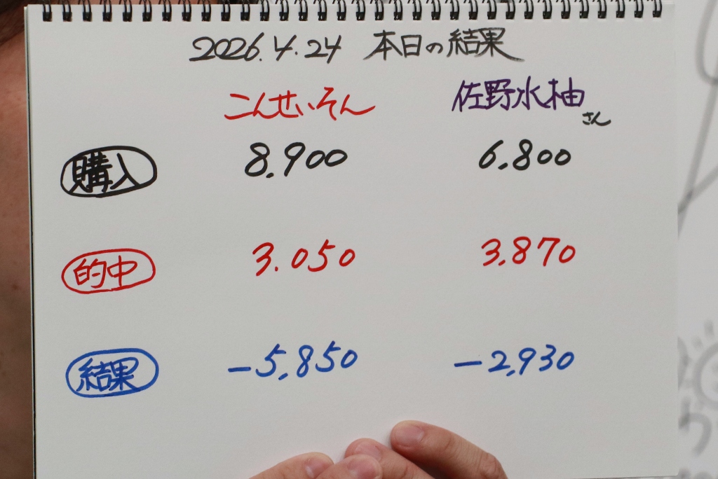 結局こんさん2勝、佐野さん3勝。収支はマイナスでした残念。