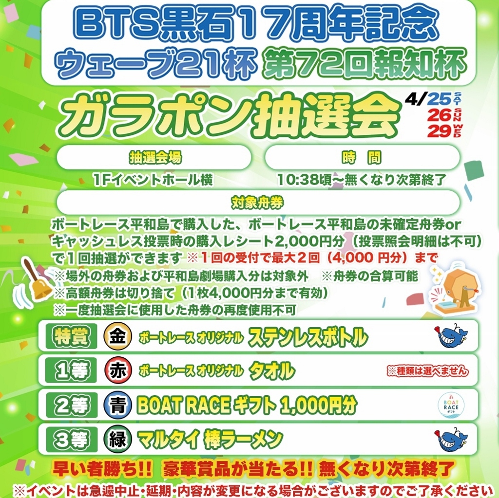 『ボートレースチケットショップ石開設17周年記念・ウェーブ21杯・第72回報知杯』