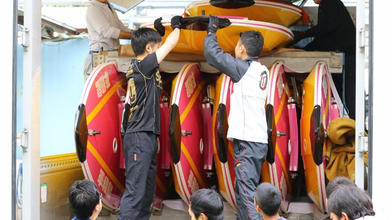 スタッフ・選手共同で新艇の作業を行います。