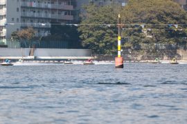 追い風4mの水面、6コースから0.40のスタートタイミング、6着無事故完走でした!初出走おめでとうございます!