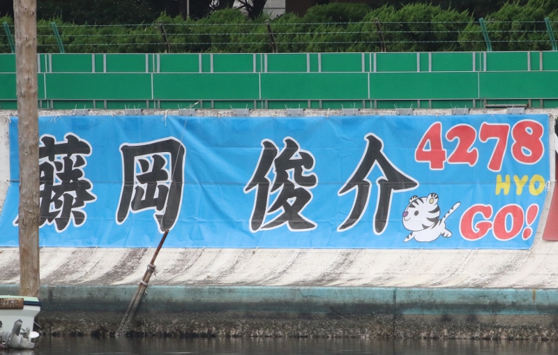 いよいよ開幕!水面には張り切れない程の横断幕が!